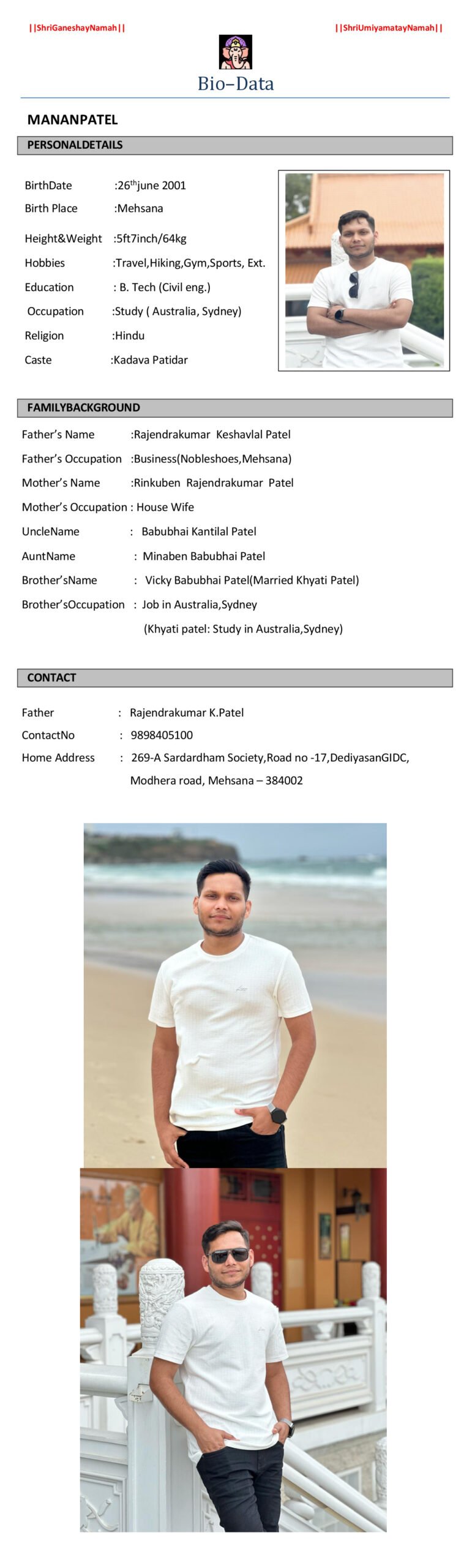 સબંધસેતુ માં બાયોડેટા પોસ્ટ કરવા માટે બાયોડેટાની પીડીએફ અથવા ઇમેજ ફાઇલ મો. ૯૯૯૮૭૩૩૮૨૫ પર વોટ્સઅપ કરવી.